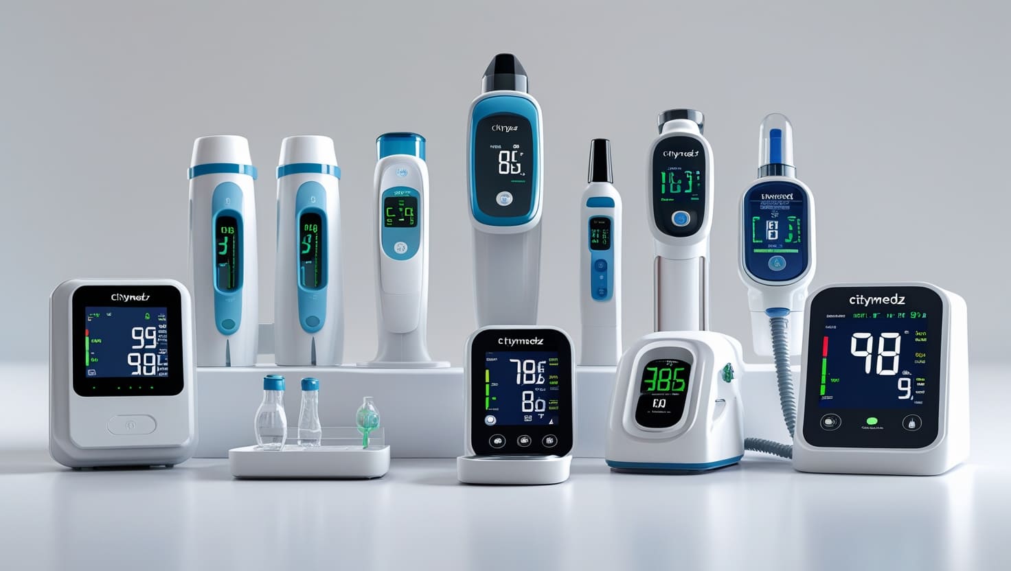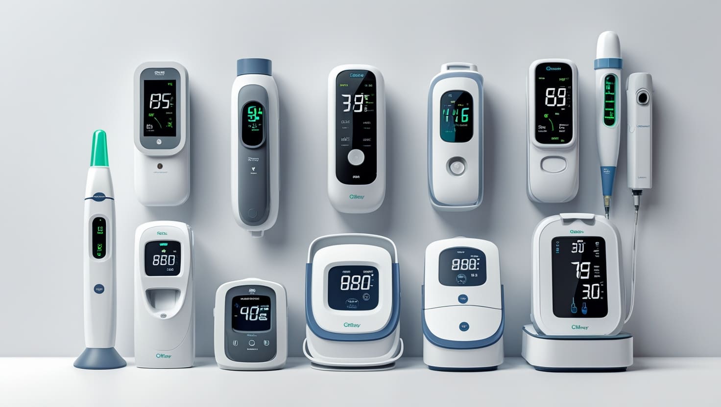 Blood pressure monitors, glucometers, oximeters, and thermometers for regular health check-ups at home.