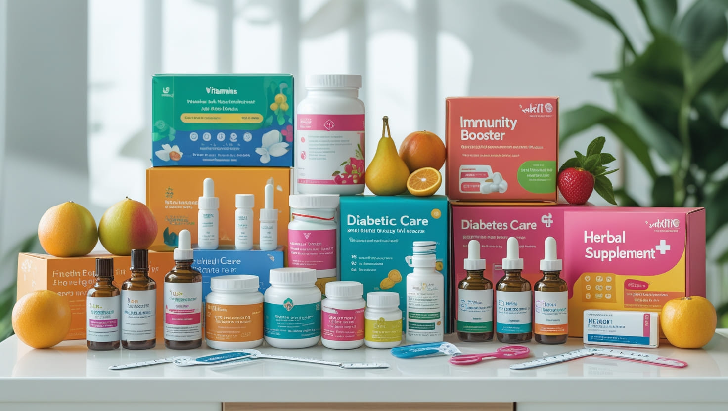 Daily multivitamins, immunity boosters, omega-3, protein powders, and herbal supplements for all age groups.